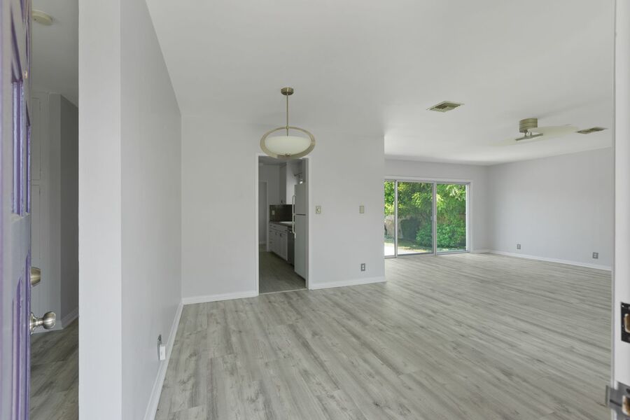 This beautifully updated home offers plenty of natural sunlight and a spacious, open layout. The large living room flows into the dining area, with a sliding glass door that leads directly to the pool and backyard—perfect for indoor-outdoor living.