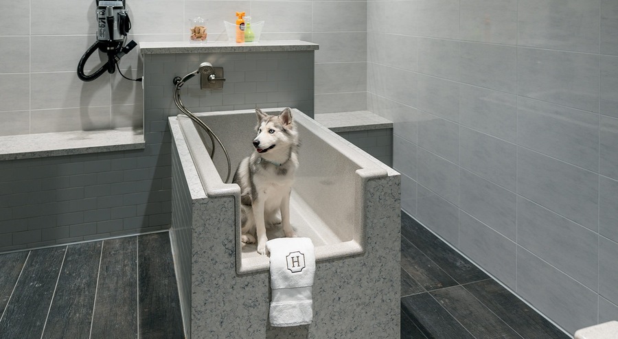 Pet-friendly living with dog spa and grooming stations