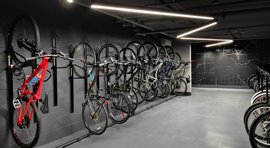 Bike storage room with fix-it station