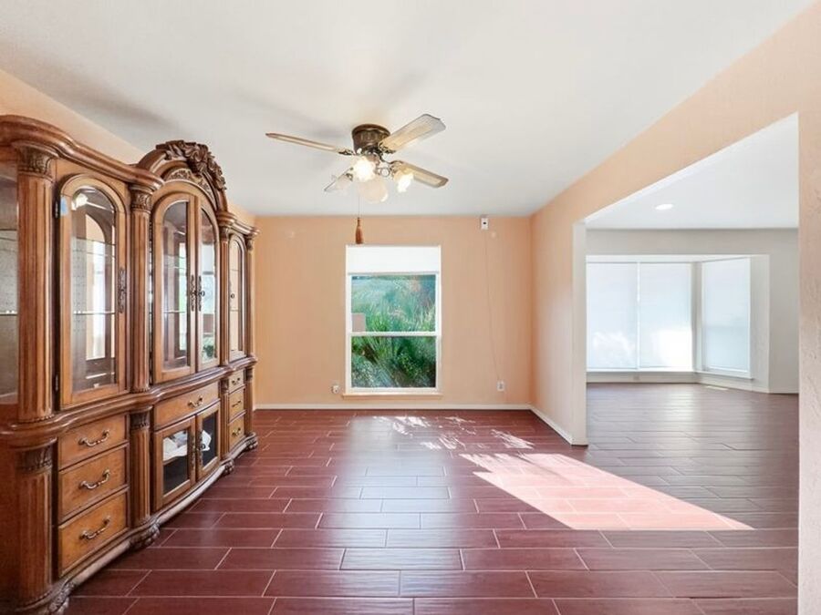 Situated on a desirable corner lot, this well-maintained brick home offers timeless character paired with beautiful city and mountain views. Conveniently located near Patriot Freeway and just minutes from Fort Bliss, the location is ideal for commuters and military families alike. Inside, you'll find a warm and inviting living room featuring exposed ceiling beams and a cozy fireplace - full of charm and architectural detail. The kitchen is equipped with stainless steel appliances, including a cooktop, built-in oven, built-in microwave, dishwasher, and refrigerator. Floor-to-ceiling windows fill the space with natural light and provide peaceful views of the backyard and city beyond -- a bright and comfortable space for everyday living. Enjoy all-tile flooring throughout -- no carpet anywhere -- plus the added convenience of a washer and dryer included. Step outside and relax in your private outdoor sauna spa tub -- perfect for unwinding at the end of the day while enjoying the views.
