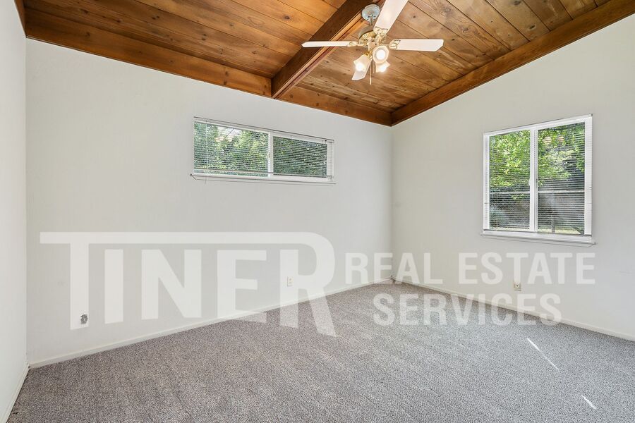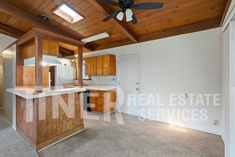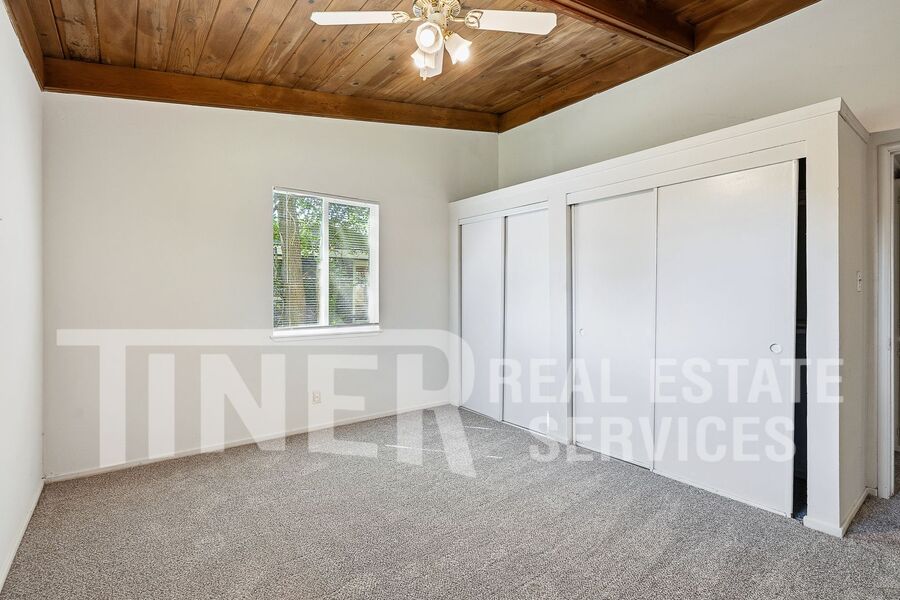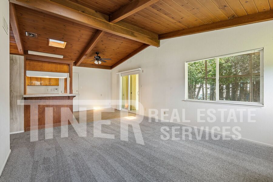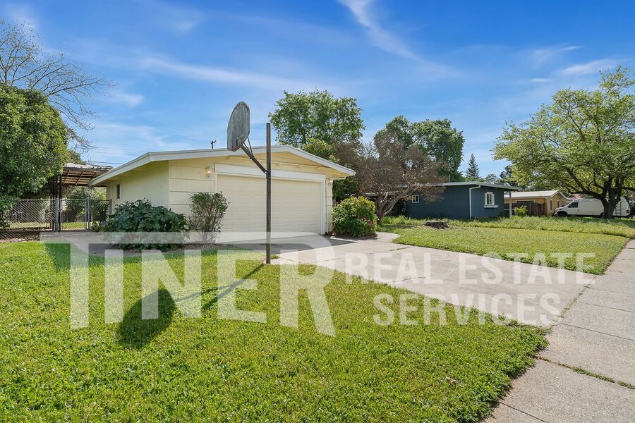 Charming Home in the Heart of Carmichael! This inviting 3-bedroom, 2-bath residence combines thoughtful updates with comfortable living spaces. The vaulted wood ceiling and skylights bring natural light into the main living area, while new paint (2026) and new carpet refresh the interior. The primary bedroom includes a large closet. A built-in bunk/loft space adds flexible sleeping or storage options in the secondary bedroom. The kitchen features laminate countertops and garage includes laundry hookups for convenience. Additional highlights include vinyl flooring, ceiling fans, central heat and central air conditioning, an attached garage, two parking spaces, a covered patio, and a backyard for outdoor use.