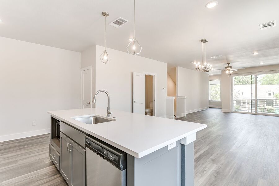There are 5 generous private bedrooms, each with a private bathroom and private coded door lock. The common floor features solid surface floors, a balcony, large open living area with flat screen TV, powder bath, and a kitchen your parents will envy. There are 2 bedrooms on the 1st floor and 3 on the 3rd floor with a set of washers and dryers on each floor – so no schlepping up and down the stairs to do your laundry. Parking is private, gated, well lit, fenced, off street, and onsite.