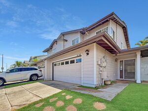 Welcome to Enchanted Lakes in Kailua! Nicely remodeled 3 bed, 1 bath duplex with mountain views! Bright open concept floor plan with a spacious living room, hardwood floors. Remodeled kitchen with newer appliances and eat in breakfast bar. Upstairs you will find the primary suite with beautiful views, private balcony, large closet, A/C and ceiling fan. Two additional bedrooms are also upstairs with spacious closets and ceiling fans. Nicely remodeled bathroom plus a full size washer and dryer upstairs! The duplex features beautiful landscaped and fenced yard. Pet friendly and plenty of parking.