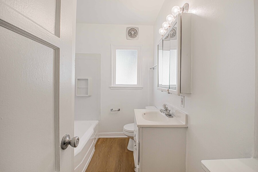 ~ Updated Bathroom: Soaking tub/shower, an oversized vanity, large mirror, and an additional storage.