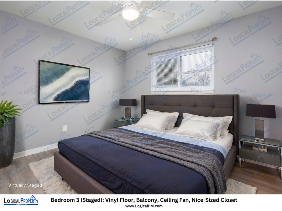 Each bedroom is thoughtfully laid out to provide a cozy and private retreat, featuring durable flooring, good natural light, ceiling fans for added comfort, and generously sized closets to meet your storage needs.