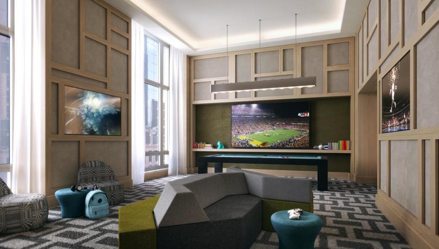 Overlooking the lake, this beautifully crafted high rise is detailed with exquisite finishes. From the sprawling landscaped terrace with outdoor pool and cabanas to 7,000 square foot fitness center, this timeless community fulfills all your needs with classic elegance. A resident lounge and separate kids playroom offer additional spaces to work or entertain. Within each residence, you ll find floor-to-ceiling windows, tall ceilings and hardwood flooring cascading with light. Custom kitchen and bath finishes keep the spaces light and airy.