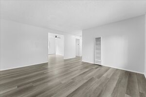 As you move into the heart of the home, the kitchen and adjoining dining area take center stage. The kitchen features an U-shaped layout with brand-new, modern cabinetry offering plentiful storage, generous countertop space with a full appliance package including stove, refrigerator, microwave, and dishwasher. The thoughtfully designed kitchen flows seamlessly from the living into the hallway where you'll find the bedrooms.