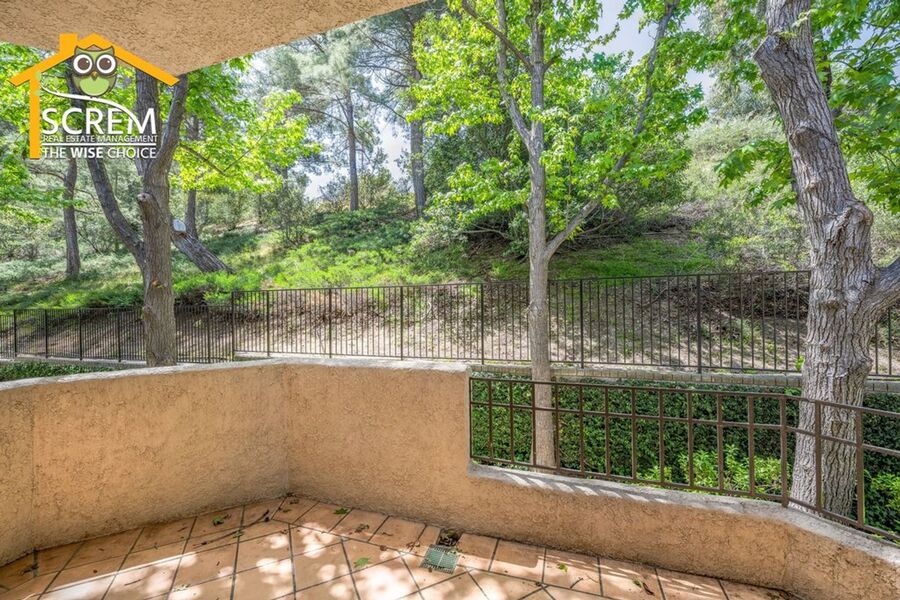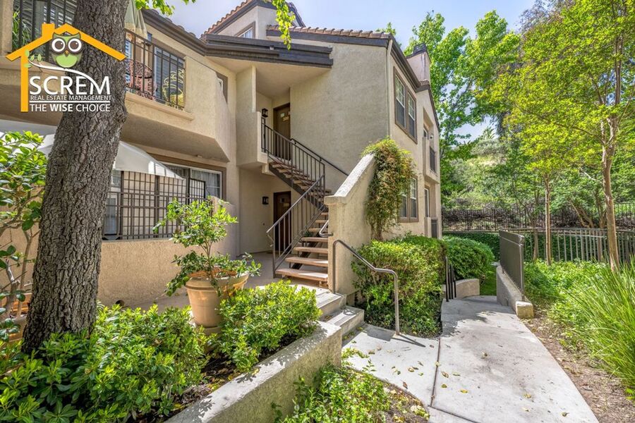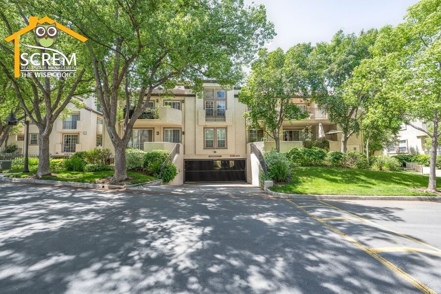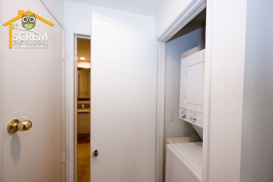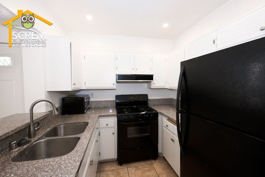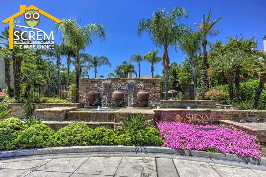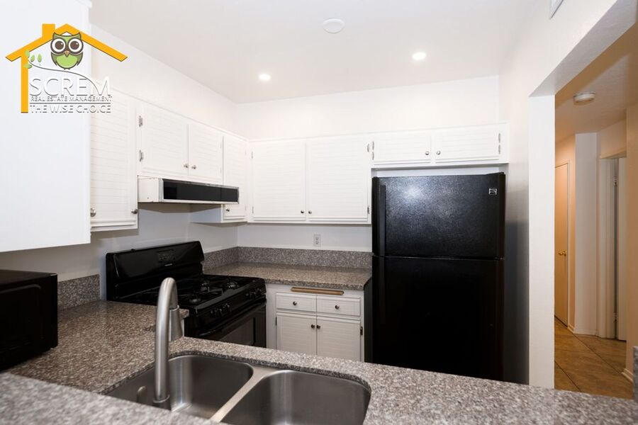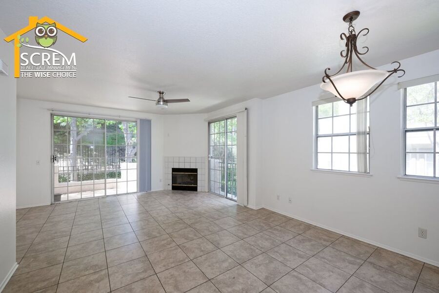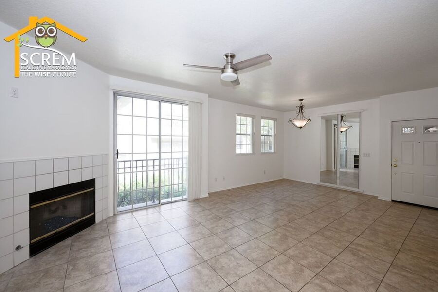 Charming lower level two-bedroom, two-bathroom condo in the desirable Siena Villas community. Fresh paint and low-maintenance tile flooring throughout. The cozy living room features a corner fireplace, ceiling fan, and two sliding glass doors, one leading to a private balcony and the other to a spacious wraparound patio. The dining area connects seamlessly to the kitchen, which has been updated with new countertops and includes all essential appliances, including a gas stove, single oven, dishwasher, refrigerator, and countertop microwave. The primary suite offers a walk-in closet and an attached bathroom with a walk-in shower. There is a guest bedroom and a full guest bathroom. Additional highlights include a laundry closet with a stackable washer and dryer, two assigned parking spaces in a secure subterranean garage, and convenient access to the lower level. Water and trash are included in the rent. Enjoy HOA amenities, including a pool, spa and tennis courts. Located close to shopping, restaurants, and the 5 freeway. *Owner may consider a small pet.