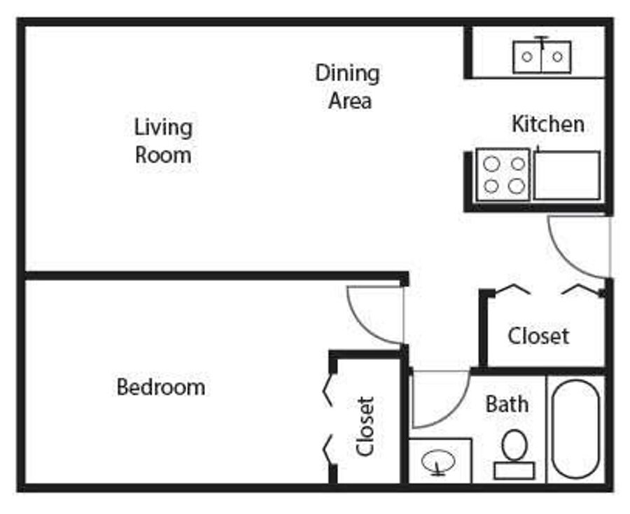 1 Bedroom / 1 Bathroom Layout