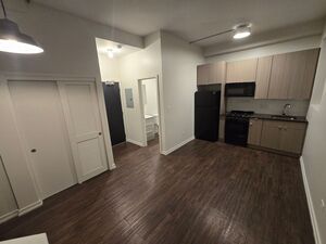 • First floor contains an open-concept kitchen / living room with a full-size washer & dryer plus a full bathroom.
