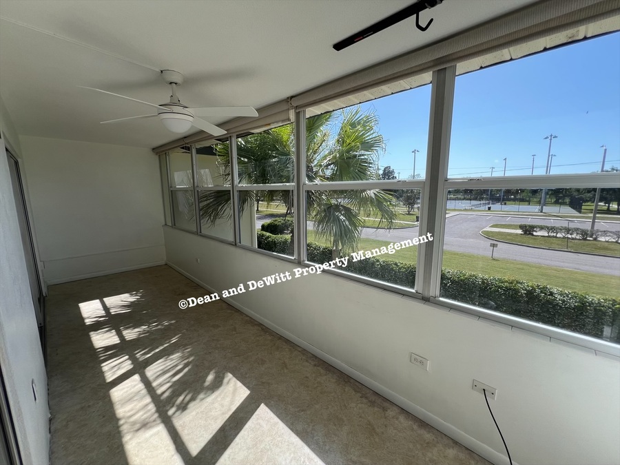 The unit is located on the second floor of the building. There are plenty of activities to take advantage of in the Lake Vista Recreation Center which is right across the street. You will find winding paths, tennis courts, playground and ball fields. It is also close to Boyd Hill Nature Preserve. The unit offers vinyl plank flooring throughout, a large private balcony, custom shelving system in the bedroom closet, inside the gate parking spot and view of the park.