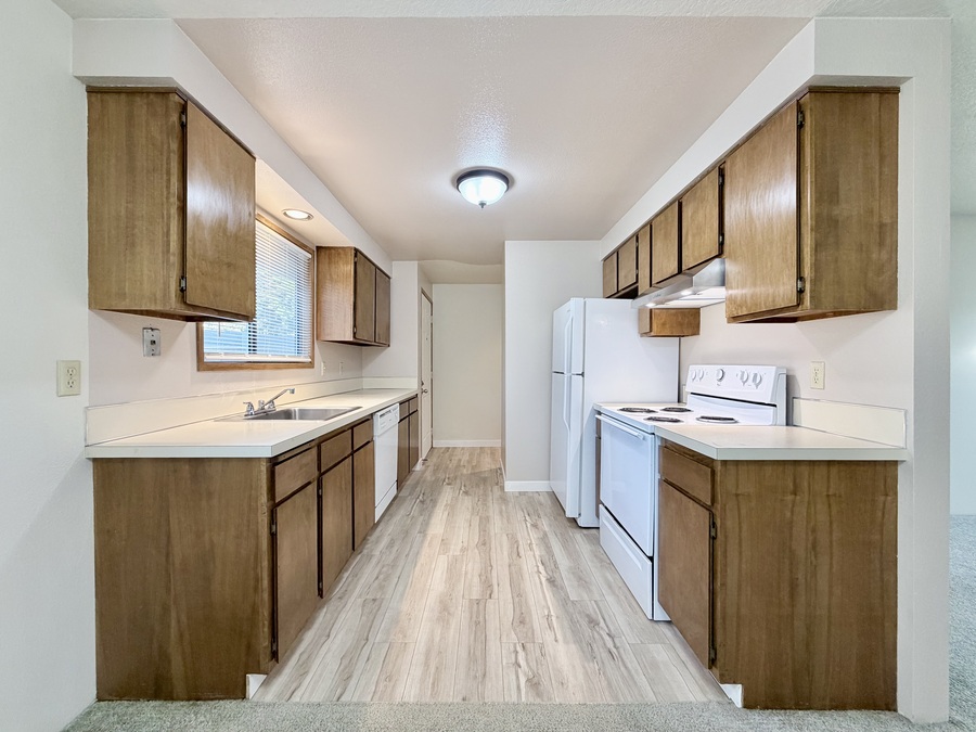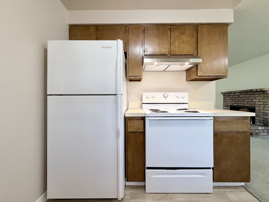 Welcome home to Apartment 220 at 143rd Ave! This inviting end-unit is filled with cozy touches throughout. The updated kitchen features warm cabinetry and a welcoming feel, while the living room offers a charming decorative brick fireplace that adds character to the space.