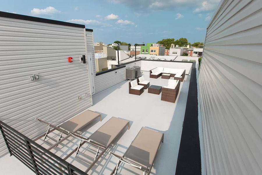 There is a washer and dryer in each unit, and all tenants can also enjoy a massive, shared rooftop deck, which captures beautiful Center City views.