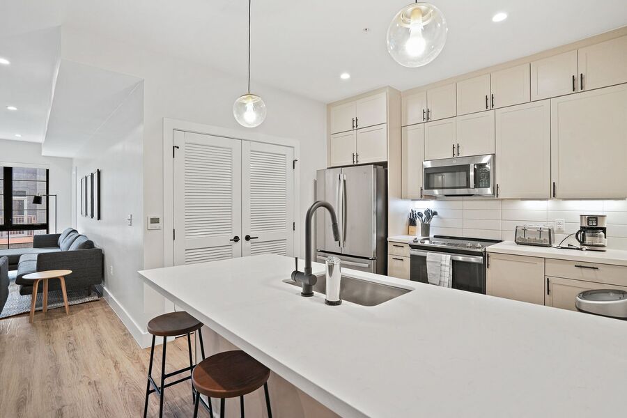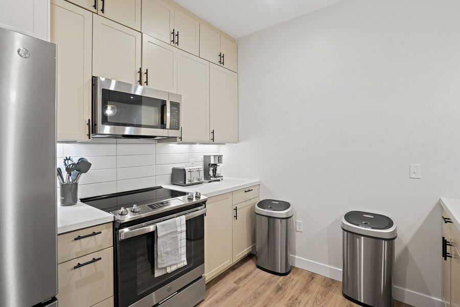 Our thoughtfully designed suites come fully furnished in the kitchen and living areas and include: