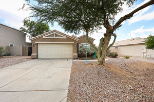 $1,000.00 OFF 1st full month's Rent if Move In by Oct 20th. Charming Home just minutes from State Farm Stadium & Westgate Entertainment District. A short walk to a landscaped park w/ garden fountain, swimming pool and playground. Open layout w/ family room and kitchen designed to overlook an inviting pergola covered patio surrounded by native plants & synthetic grass. Kitchen features a large island w/ bar seating & built-in sink, counter breakfast bar w/ pendant lighting, rich hardwood cabinets, double wall ovens, built-in microwave, stainless steel appliances and walk-in pantry. Upstairs has a functional split plan w/ center loft and laundry room w/ washer & dryer included. Primary Ste includes a large bedroom, walk-in shower, garden tub, double sink vanity, private toilet room and walk-in closet with open shelving.