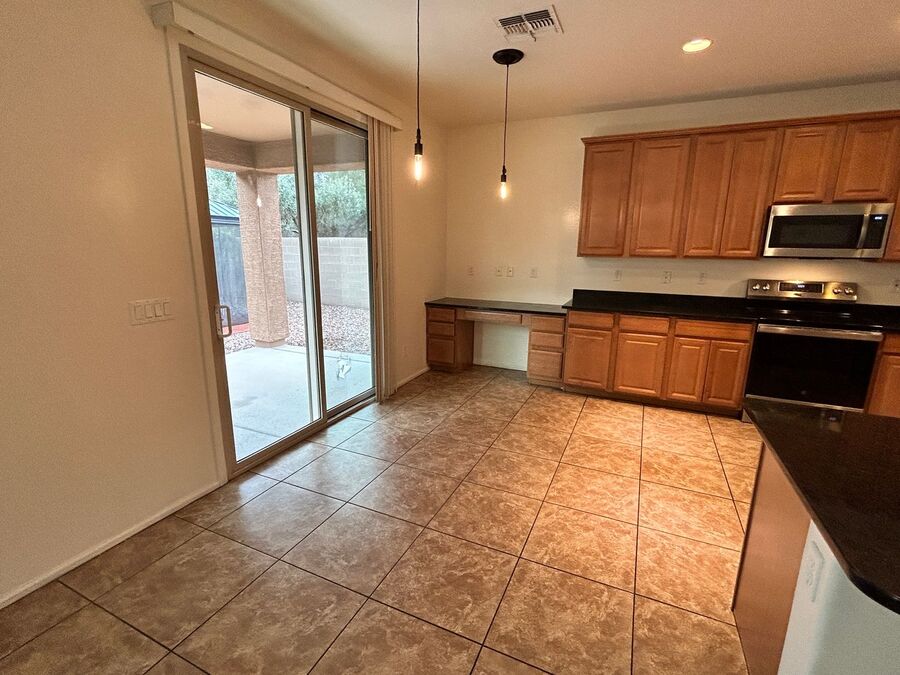 Welcome to this stunning, move-in ready home just minutes to Westgate and State Farm Stadium. This expansive two-story layout offers 4 bedrooms, 3 full baths, and a bright, open floor plan designed for gathering and entertainment. The large eat-in kitchen features granite countertops, a breakfast bar, eat-in kitchen, stainless steel appliances, recessed lighting, a walk-in pantry and a computer desk area.