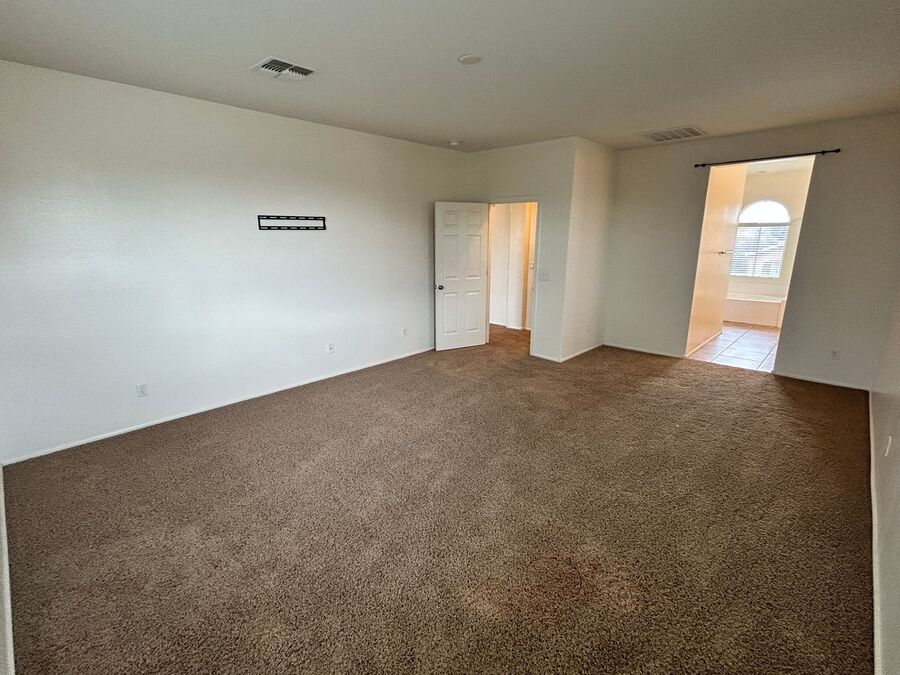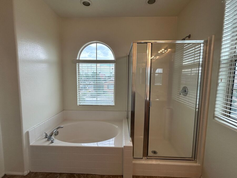 A formal dining room provides an elegant space for dinners, while a downstairs bedroom and full bath offer convenience for guests. Upstairs starts with a large loft that is perfect for a second family room office or play area.  The split floorplan provides privacy, the large primary suite is spacious and inviting with ensuite bath with dual sinks, separate soaking tub and walk-in shower, toilet room and a walk-in closet. The two secondary bedrooms share a bathroom and has plenty of closet space. Enjoy a private backyard with a covered patio and view fence. The 3-car garage provides ample space for parking and storage. Located in a fantastic neighborhood close to shopping, dining, and entertainment. Home is friendly to a max of 2 spayed/neutered pets w/additional $350 per pet fee.