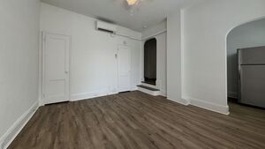 This 400 sq. ft. apartment maximizes space efficiency with a thoughtful layout. The kitchen features sleek white cabinetry, stainless steel appliances, and a subway tile backsplash, creating a modern cooking area. The 130 sq. ft. bedroom provides ample space for rest and storage. The bathroom boasts a contemporary design with a glass-enclosed shower and white tile walls. Throughout the unit, light-colored walls and wood-look flooring create a bright, airy atmosphere. Windows in multiple rooms allow natural light to flood the space, enhancing the open feel of this compact yet functional home. Buildings feature controlled access, onsite fitness center and 24-hr laundry facility.