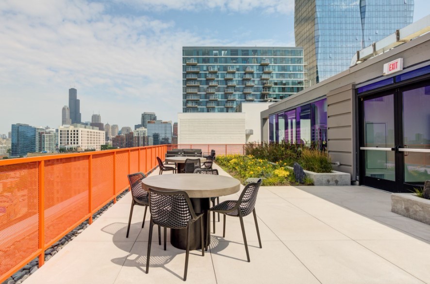 Although dog breed restrictions apply, pets are welcome. Your furry friends will appreciate the onsite dog run and especially the Fred Anderson Dog Park, which is only about 2 blocks south. There is a parking garage on-site (additional cost) but with so many public transportation options nearby you may not need it. There are a handful of bus stops about a block away, and the CTA Roosevelt Station (L service for Red, Green, and Orange line trains) is just a six minute walk north.