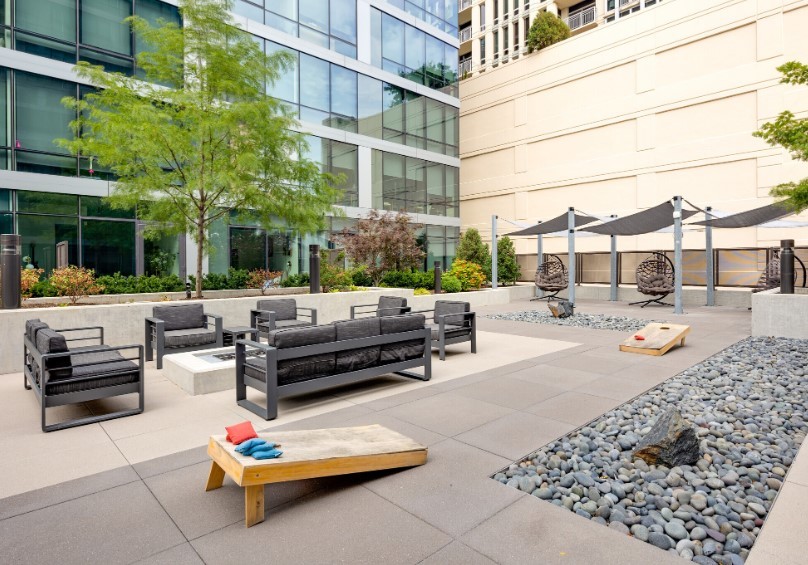 In terms of amenities, there are two outdoor terraces located on the 3rd and 16th floors. Savor the views while grilling your favorite meal or cozying up by the fire pits. Inside, there s a party room and resident lounge, complete with a chefs kitchen and private dining area for special occasions. For gym enthusiasts, the Peloton bike-equipped fitness center awaits. This community has also made daily life more convenient with package lockers, complimentary bike storage, and round-the-clock door staff to cater to your needs.
