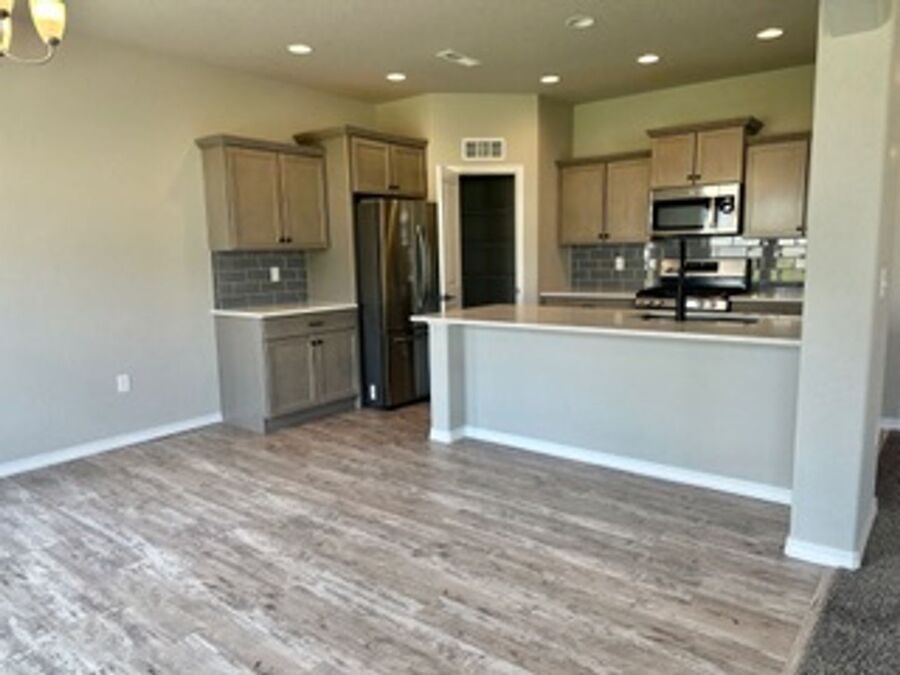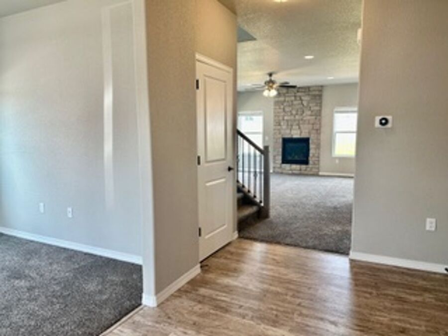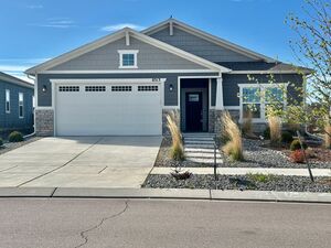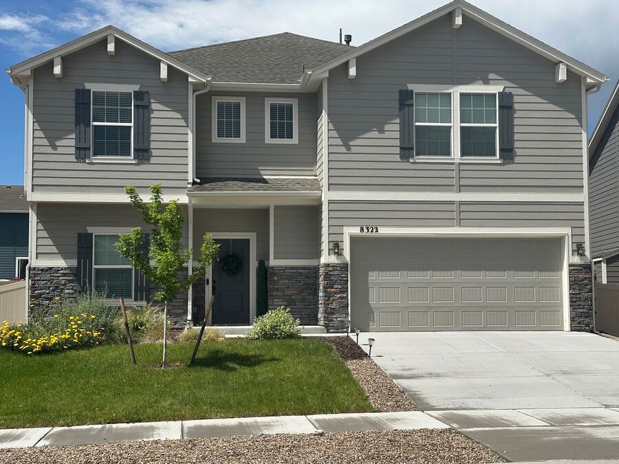 Take a look at this beautiful home in new Mountain Vista off of Marksheffel. This home has all the extras! A covered front porch greets you and leads you into a large, formal entry. Beautiful luxury vinyl plank flooring throughout the main level. Spacious, gourmet kitchen with quartz countertops, a gas range, composite under mount sink, beautiful tile backsplash and recessed lighting finish it out. Walk-out to immaculately kept large backyard fully fenced for privacy. The large living room has a beautiful stone to ceiling fireplace. Upstairs includes an amazing loft area for kids playroom, media room, or office area. The primary bedroom has double doors, a large walk-in closet and a private bath with quartz countertops, soaking tub and spa shower with seat. 3 car garage. Mountain Vista is home to a 4 acre park and walking trails and is close to shopping, dining, schools, parks and entertainment! Easy drive to Peterson AFB, Schriever or Fort Carson!!