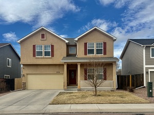 Take a look at this beautiful home in new Mountain Vista off of Marksheffel. This home has all the extras! A covered front porch greets you and leads you into a large, formal entry. Beautiful luxury vinyl plank flooring throughout the main level. Spacious, gourmet kitchen with quartz countertops, a gas range, composite under mount sink, beautiful tile backsplash and recessed lighting finish it out. Walk-out to immaculately kept large backyard fully fenced for privacy. The large living room has a beautiful stone to ceiling fireplace. Upstairs includes an amazing loft area for kids playroom, media room, or office area. The primary bedroom has double doors, a large walk-in closet and a private bath with quartz countertops, soaking tub and spa shower with seat. 3 car garage. Mountain Vista is home to a 4 acre park and walking trails and is close to shopping, dining, schools, parks and entertainment! Easy drive to Peterson AFB, Schriever or Fort Carson!!