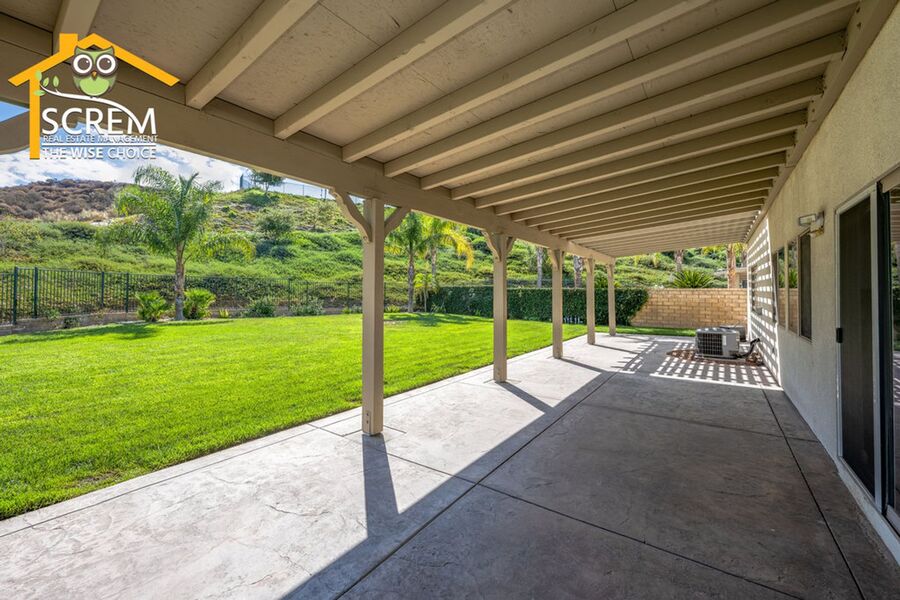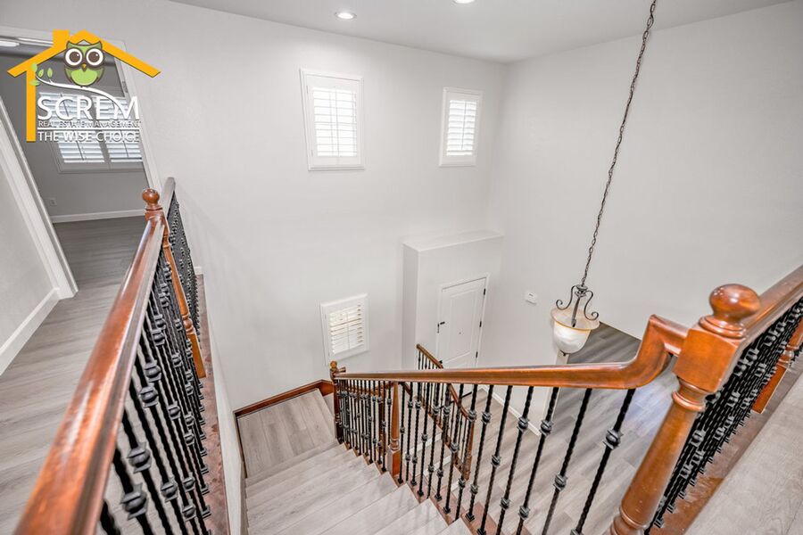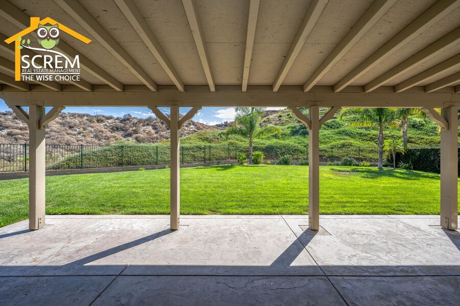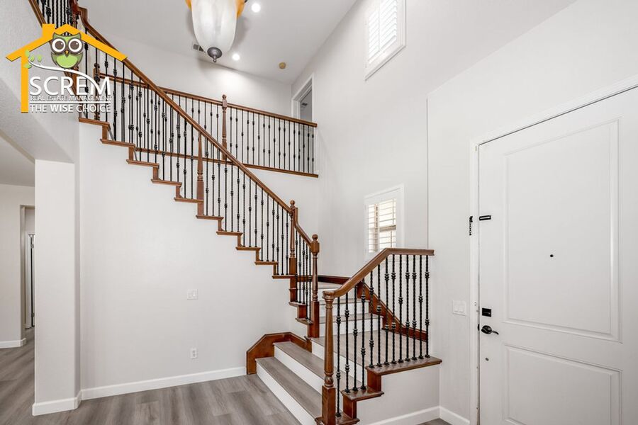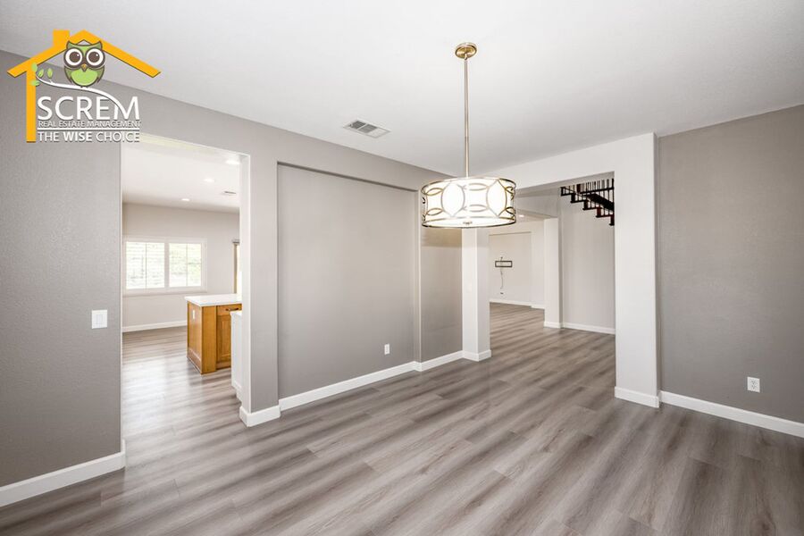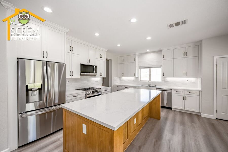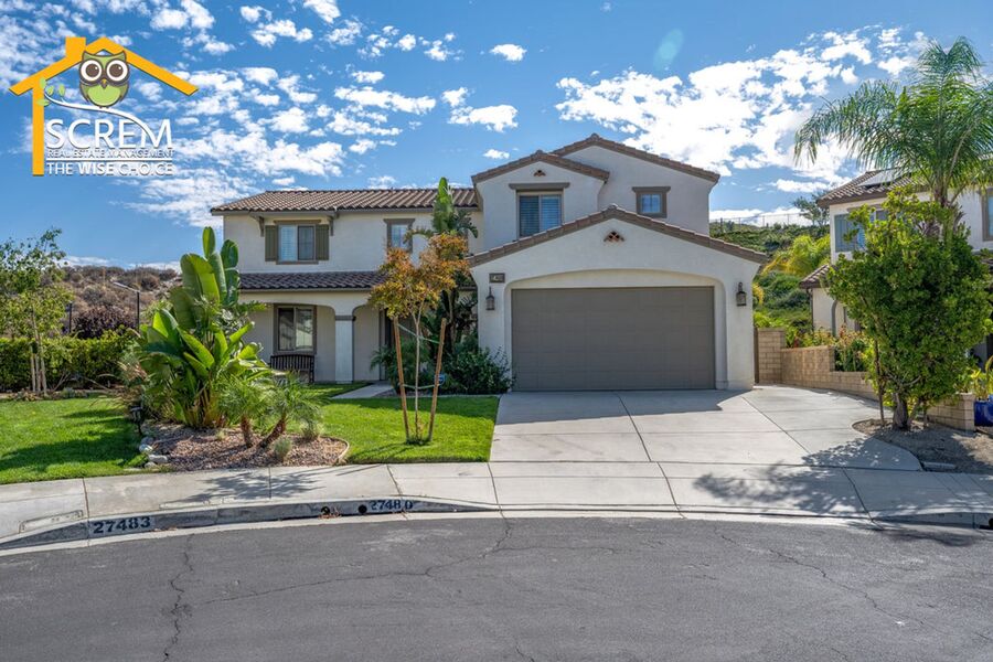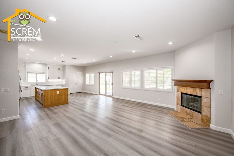 This stunning five-bedroom home with a loft and solar panels is situated at the end of a quiet cul-de-sac in Fair Oaks. The open-concept main level features a spacious living room with a fireplace, recessed lighting, and a layout that flows seamlessly into the modern kitchen. The kitchen is equipped with quartz countertops, sleek white cabinetry with brushed silver hardware, a large center island, stainless steel appliances, and a walk-in pantry. Kitchen appliances include a gas stove, a single oven, a microwave, a dishwasher, and a refrigerator. The dining area opens to a private backyard featuring a covered patio and a lush lawn, making it perfect for entertaining. A versatile front room can serve as either a formal dining room or a formal living room. There is also a downstairs bedroom and a bathroom with a walk-in shower, providing convenience for guests. Upstairs, a spacious loft adds extra living space. The primary suite boasts new flooring and a luxurious bathroom complete with dual sinks, a garden tub, a separate shower, and a large walk-in closet. Additionally, the upper level features three more bedrooms, all equipped with new flooring and walk-in closets. One of the guest bedrooms includes a bonus space that can be utilized as an office or sitting area. The home also features a downstairs laundry room with washer and dryer hookups, a three-car tandem garage, and energy-efficient solar panels. Community amenities offer a pool, spa, park, and playground, making this residence the perfect blend of comfort and convenience. Conveniently located near shopping, restaurants, and the 14 Freeway. *Owner may consider a small pet.