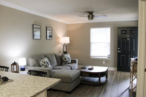 Gorgeous upgraded residence in an award-winning property. Past awards include "Property of the Year," "Maintenance Team" and "Property Manager of the Year." This newly remodeled boasts a contemporary, grey color palette. Upgrades include: faux-hardwood flooring, brushed nickel hardware, goose-neck kitchen faucet, really modern tile backsplash and under-cabinet lighting. All of this is capped off with crown molding, a new ceiling fan and bath upgrades. Bedroom boasts brand new carpet and a huge walk-in closet. Closet organizer doubles the space!