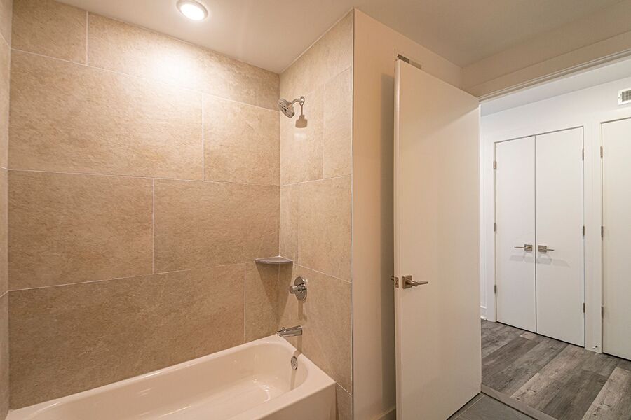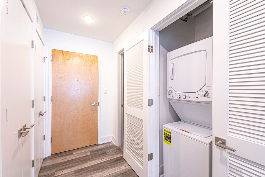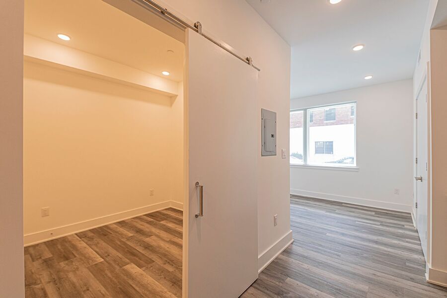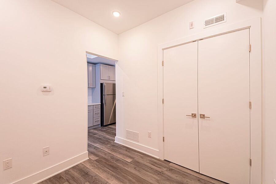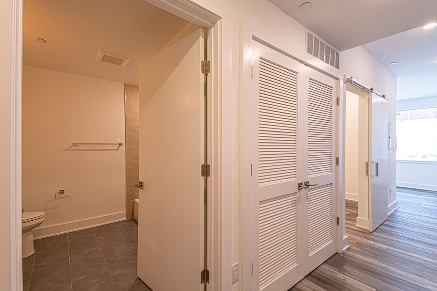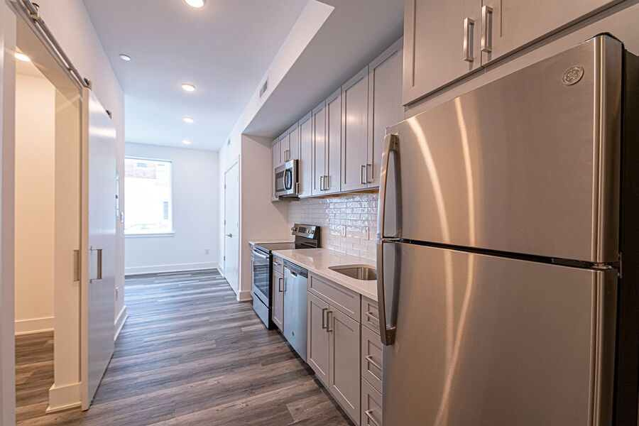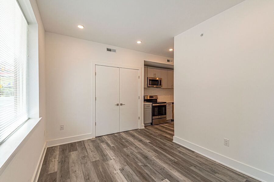 Don't miss this contemporary construction apartment building in a fantastic location! You'll be minutes from Prohibition Taproom, Cafe Lift, Union Transfer, Spring Garden, Fairmount, Northern Liberties and just two subway stops from Center City! This bright 1 bedroom, 1 bathroom has everything you need: central air, recessed lighting, washer/dryer and hardwood floors throughout. This unit includes tons of storage, including two coat closets as you first walk in and a large closet in the living room. The bathroom has a tall linen closest, shower/tub and bright white vanity. The kitchen features cool grey cabinets with sleek hardware, quartz counter top against textured white subway tile, a garbage disposal, stainless steel dishwasher, microwave refrigerator and electric range. Through the sliding barn door is the bedroom, which has a closet and is spacious enough to fit a queen sized bed! The living room includes an over sized window to let in beautiful natural sunlight, and has room for a couch and a kitchen table.