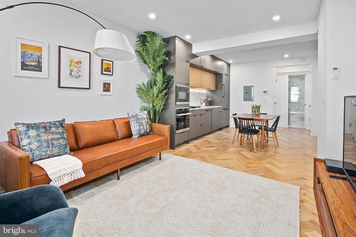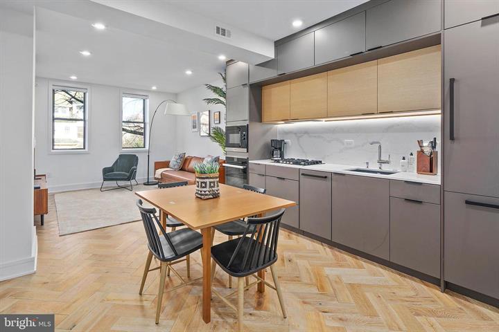 Adams Morgan apartment featuring custom, hand-cut iron-brushed hardwood floors, towering 9+ foot ceilings, designer finishes throughout, and lovely gourmet chef's kitchen!