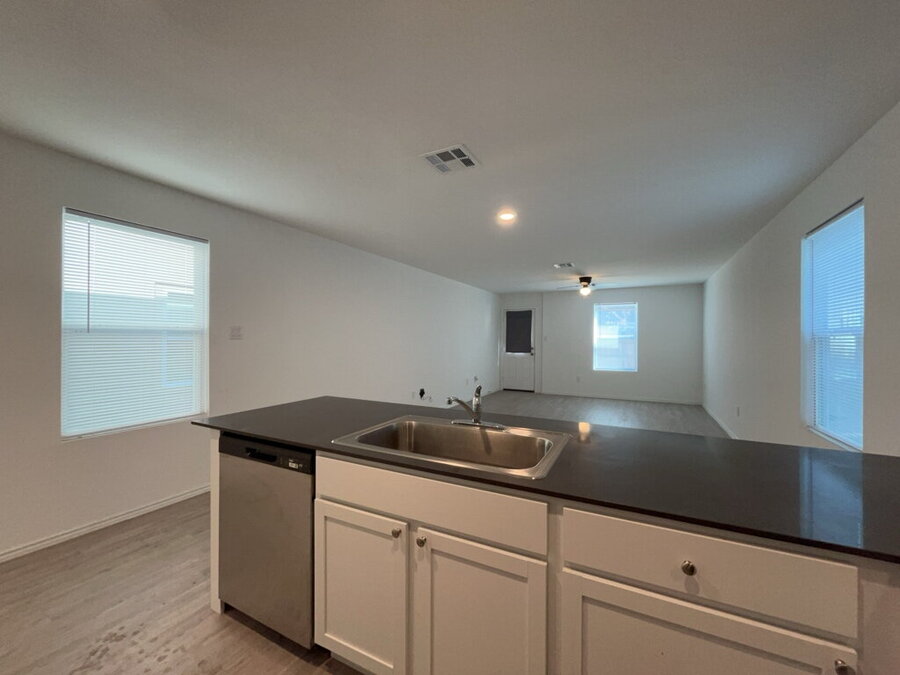 The kitchen is designed with functionality in mind and includes a breakfast bar, solid surface countertops, pantry, dishwasher, gas stove, and refrigerator, everything you need for easy meal prep and everyday living.