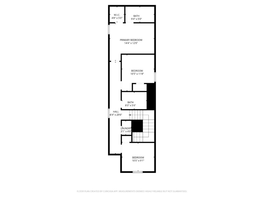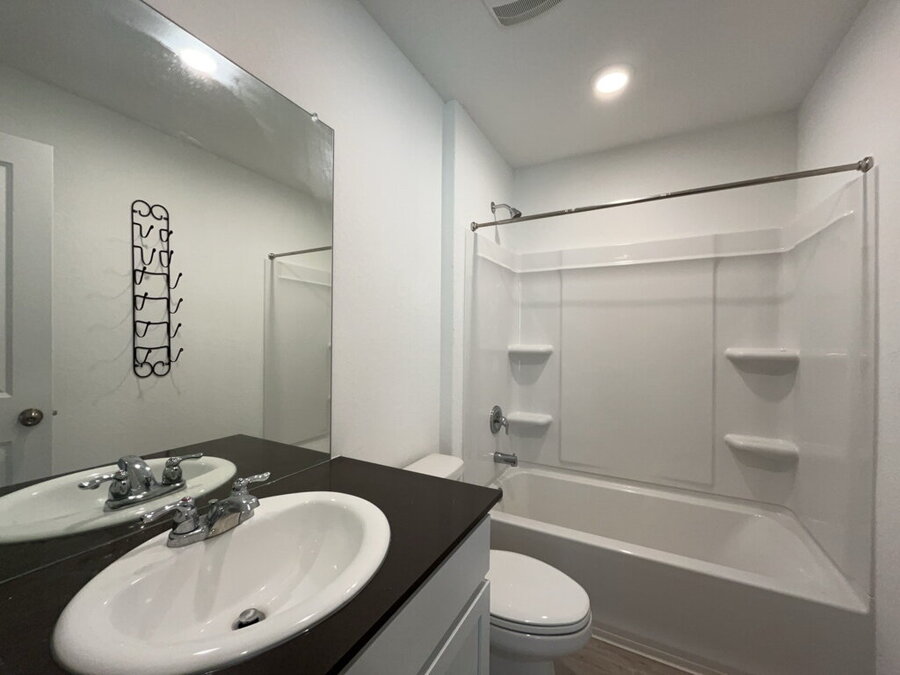 Upstairs, all three bedrooms are thoughtfully positioned for added privacy. The spacious primary suite features a walk-in closet and an ensuite bath complete with a tub/shower combination and single vanity. A stacked washer and dryer are conveniently tucked into an upstairs laundry closet, making laundry day simple and efficient.