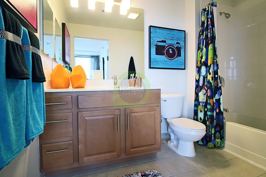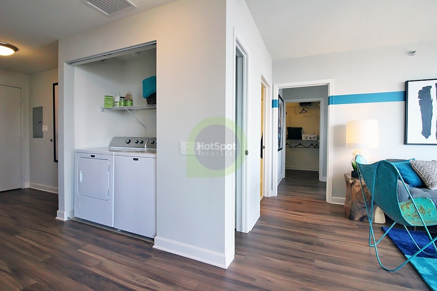 Granite countertops, maple cabinets and modern appliances are paired with tile flooring in the kitchens and baths. Units have full-size washers and dryers and central air with resident-controlled heating and air conditioning provide all of the modern conveniences in these luxury spaces. You ll love the floor-to-ceiling windows as well!