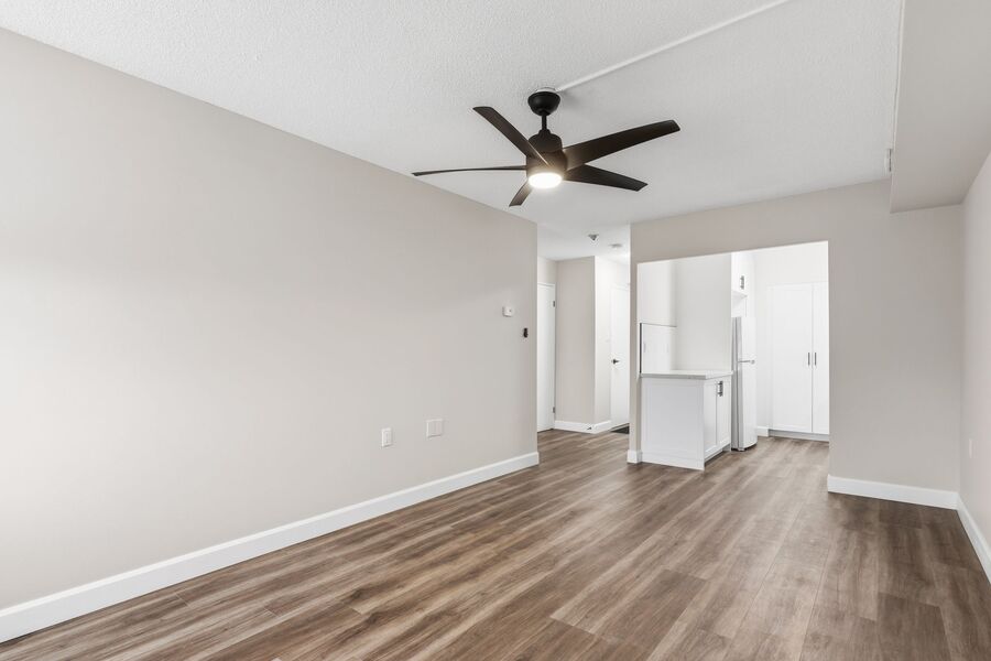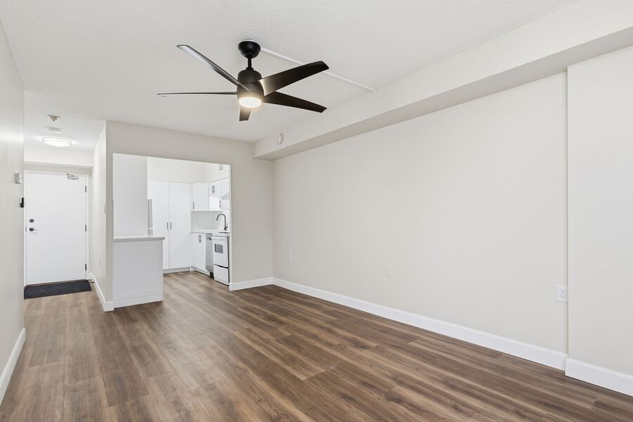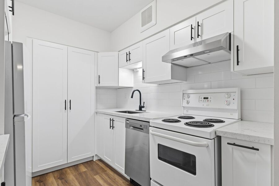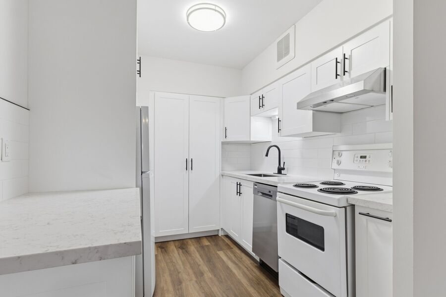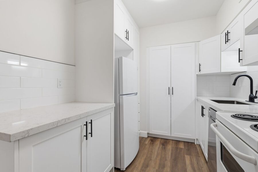 As you enter the unit, you will find a bright all-white kitchen featuring a dishwasher, pantry, and plenty of cupboard and counter space. The spacious living area offers ample room to relax or entertain, and the bedroom is equally generous in size.