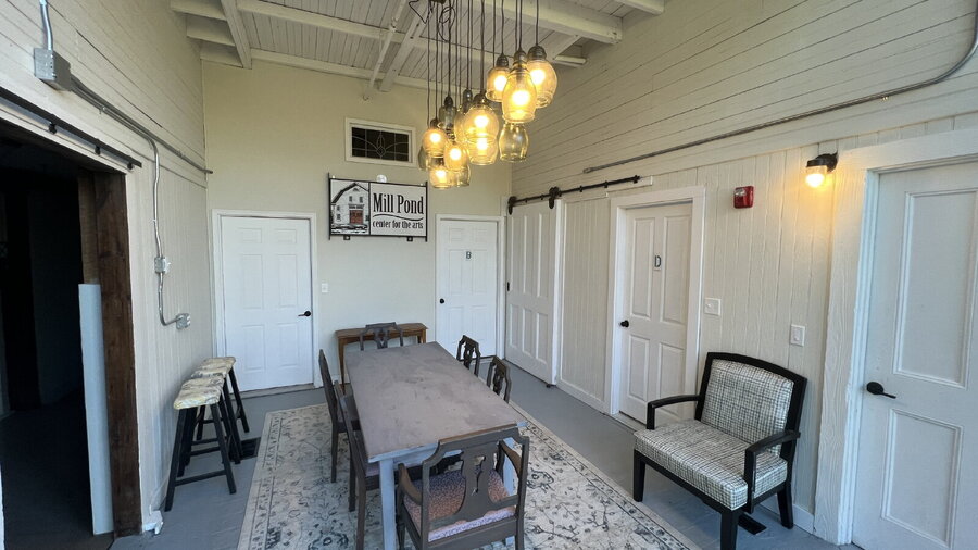 Newly renovated apartments in the historic barn of the Mill Pond Center. This open concept unit features today's modern conveniences and safety requirements while retaining the charm of the early 1900's barn. There is 1000 sf of living space with the option to enclose the bedroom in curtains (there are no walls for the bedroom - the curtains are the "walls'). High-quality cabinets with a cherry stain, exposed beams, lofted ceilings, and granite counters are just some of the design features.