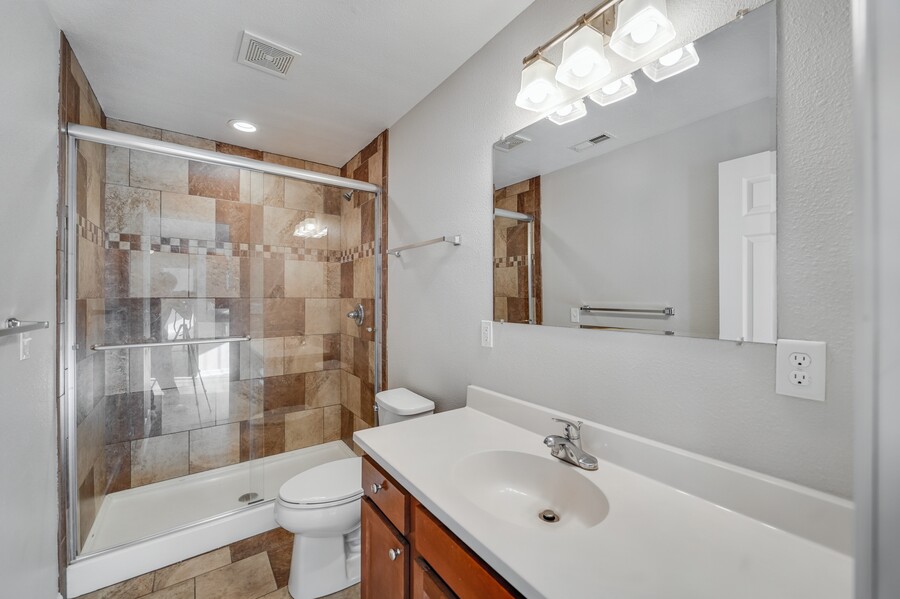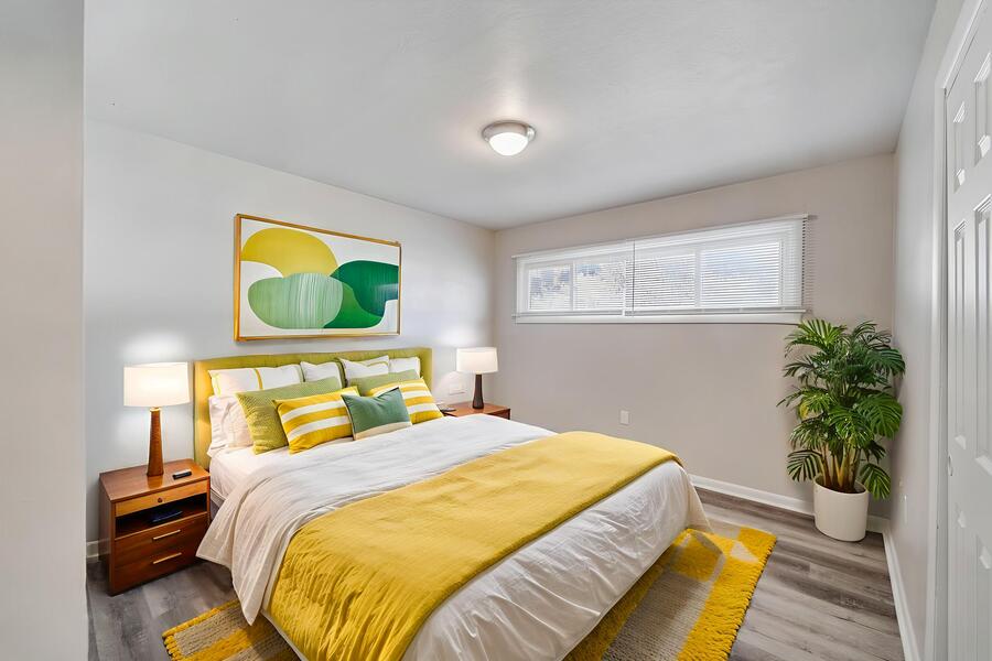 Through the sliding door there is a large private yard with concrete patio and full fencing! Each of the four large bedrooms offers abundant natural light, fresh finishes, and its own door lock for added security!