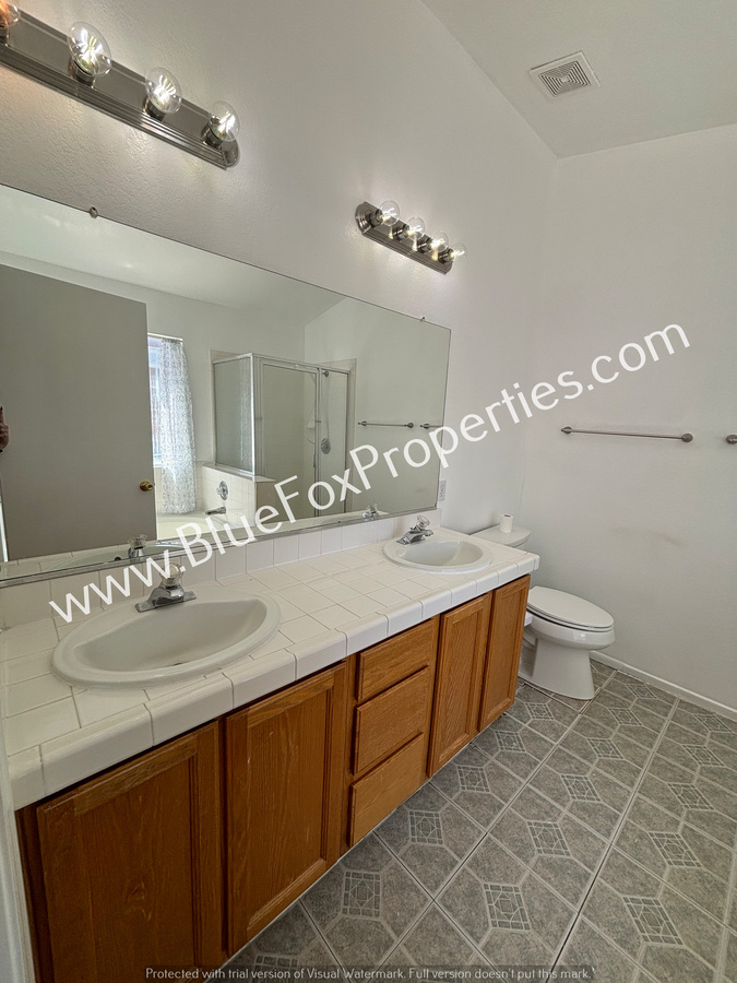 Discover this charming 3 bedroom - 2 bathroom home nestled in a wonderful neighborhood. A welcoming walkway leads you to the front door, where you will step into a bright living room with large windows and neutral color palette. As you move through the graceful archway into the family room, you will find the kitchen, featuring a stove, refrigerator, dishwasher, ample cabinet space and a pantry for all your needs. Adjacent to the kitchen is a cozy dining area. The laundry room comes with a washer and dryer as-is. The master bedroom is complete with its own bathroom featuring a double sink vanity and a spacious walk-in closet. Step outside to discover a covered patio with a generous backyard, ideal for relaxation or entertaining. Located in a desirable school district, close to parks and shopping, this lovely home is ready for you!