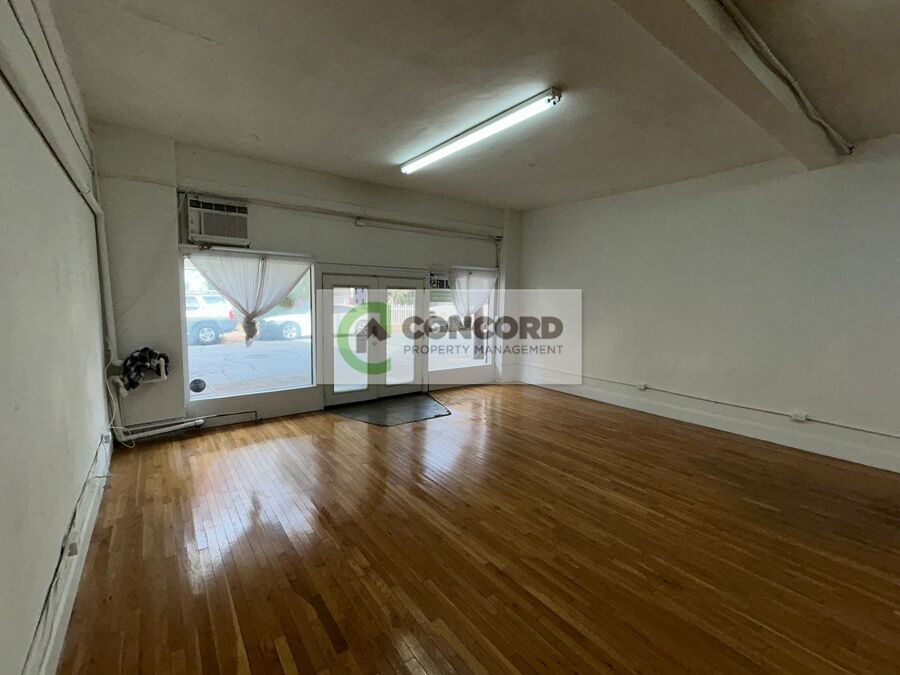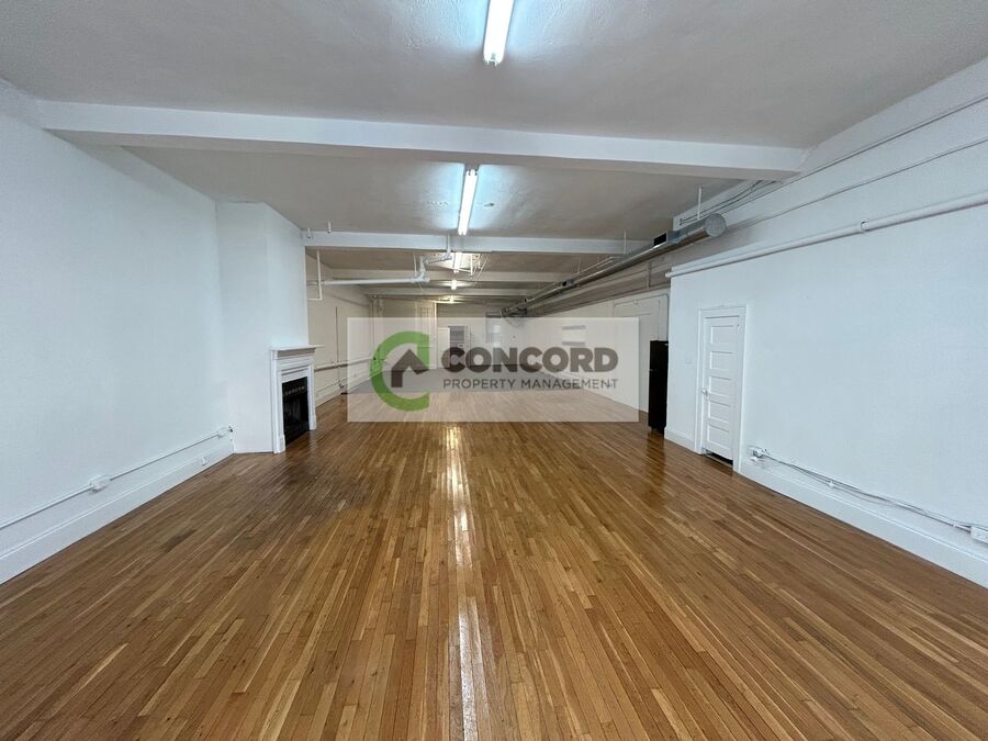 Spacious area with many possibilities. Studio, Retail or even an office. Large open space. About 2700 square feet. Hardwood floors, cement flooring, Non working fireplace and Bathroom. This space features a front space, middle area and back area with a loft for additional storage with access to a small back patio. ALL UTILITIES ARE INCLUDED IN THE RENT.(which included central a/c, gas heat and water)