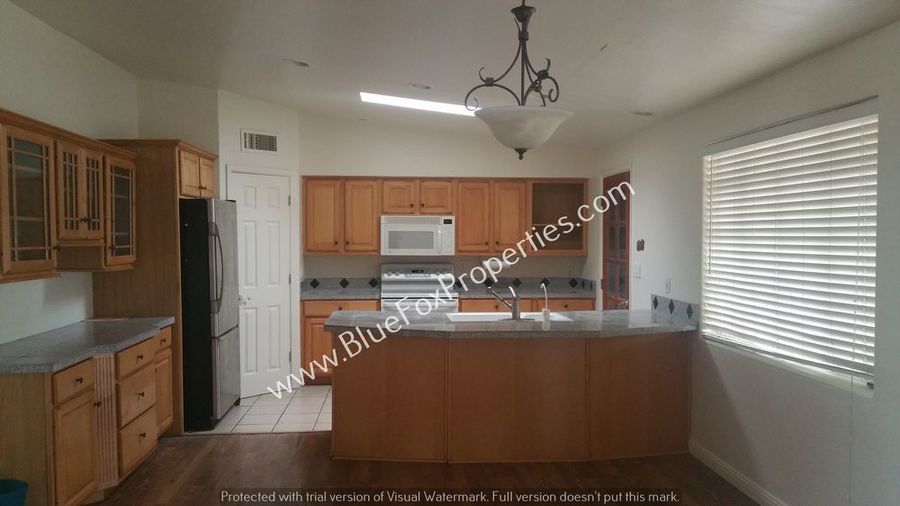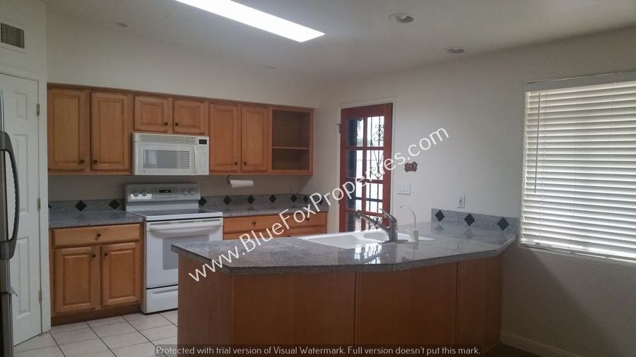Three-bedroom home with 2.5 baths on a corner lot in central Tucson. The kitchen features granite tiled counters, a breakfast bar, and loads of counter and cabinet space. Wood flooring in the main area of the home. The main home has both EVAP & central AC. Utilities will be billed back to the tenant at 75%.