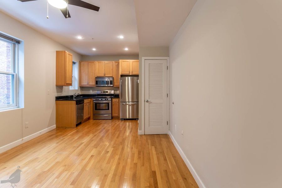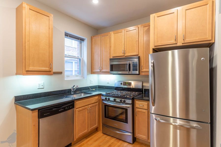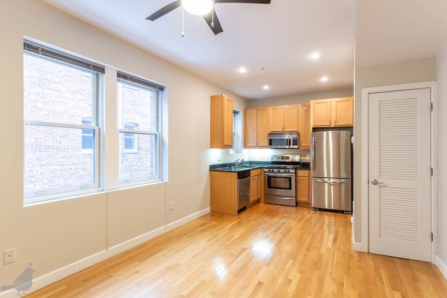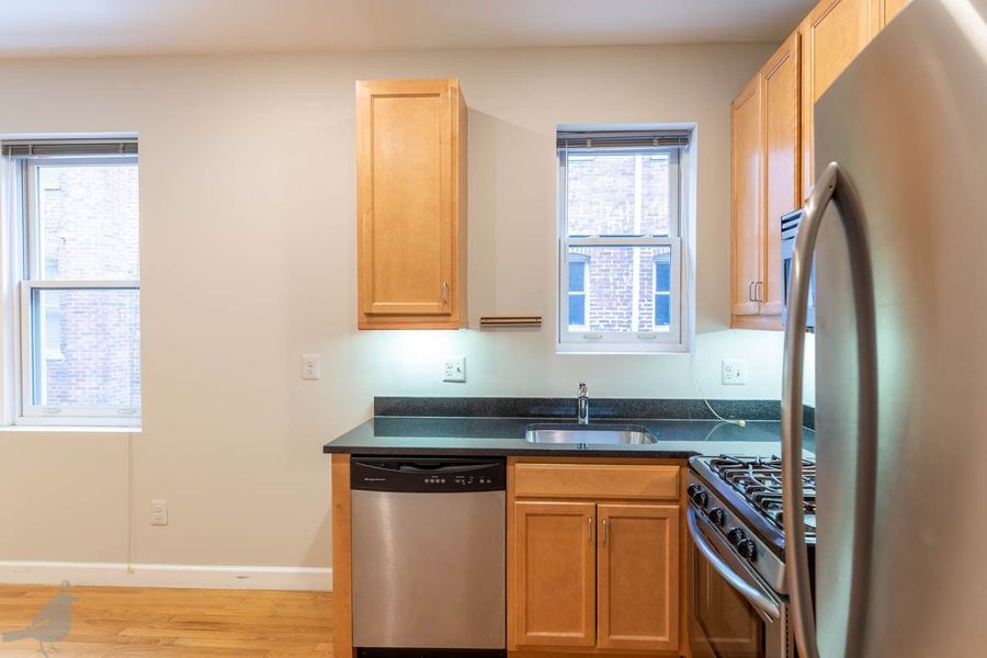 Located on the third floor, the unit enjoys a peaceful setting above street level while still being close to everything the neighborhood has to offer. Inside, you’ll find wood floors throughout, central A/C, and large windows that bring in abundant natural light.