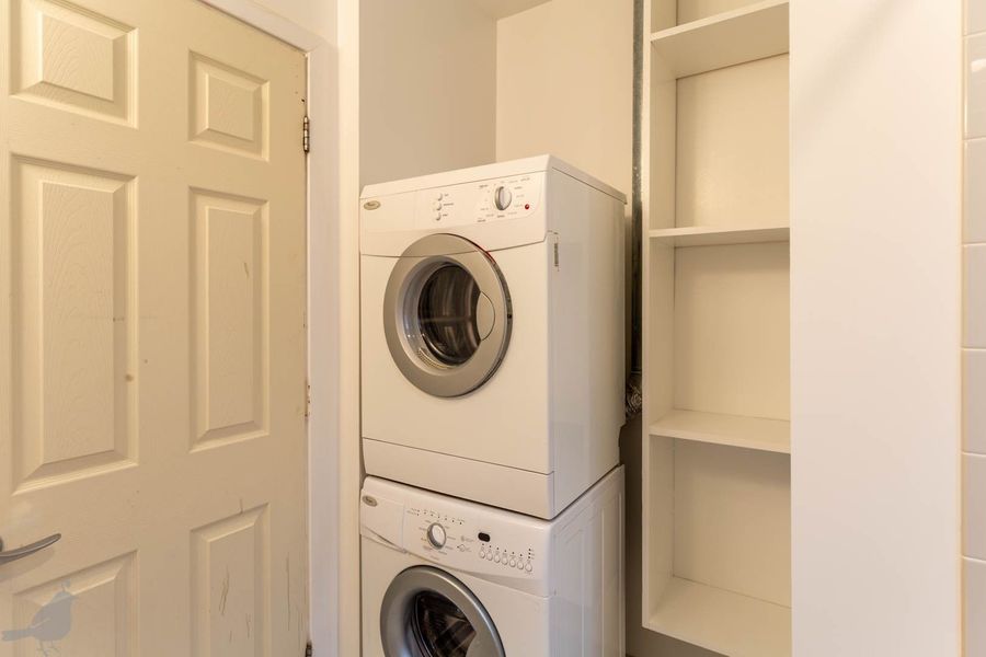 The kitchen features granite countertops, stainless steel appliances, and plenty of cabinet space. An in-unit washer and dryer adds everyday convenience, while a deep hallway closet and additional storage space in the bathroom provide excellent functionality.