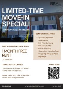 ONE MONTH FREE RENT! For a limited time, sign a 12-month lease and receive one month free at move-in.