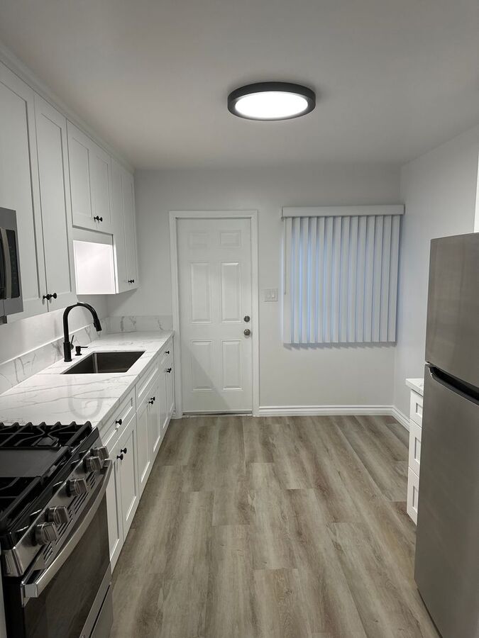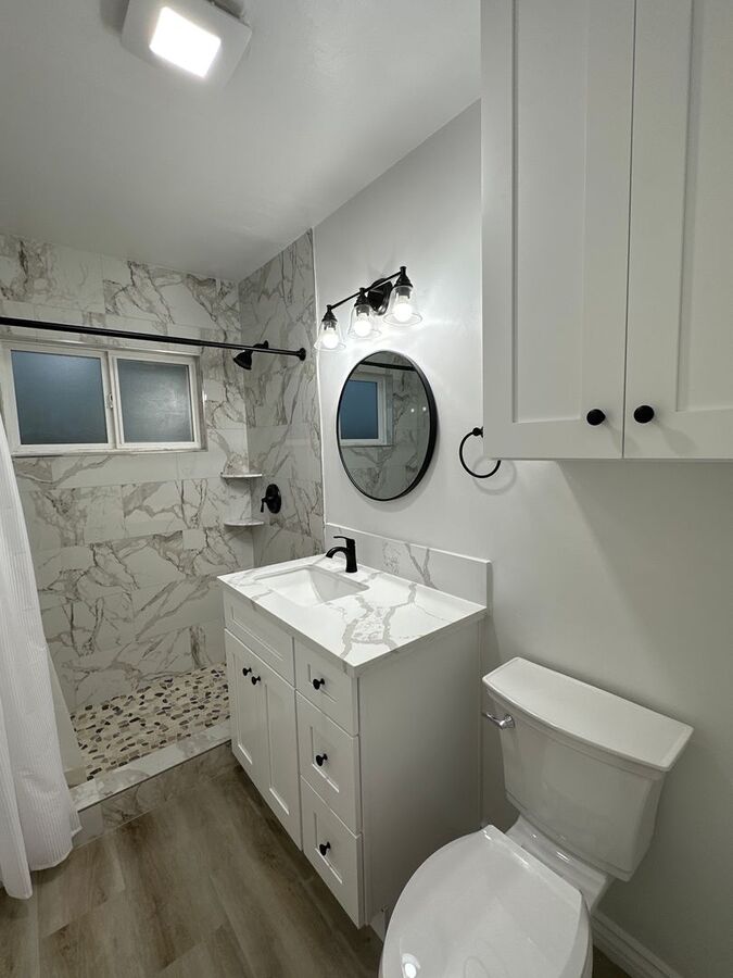 Move-in ready fully remodeled 2-bedroom, 1-bath downstairs unit in the heart of North Park, featuring a modern black-and-white design, great layout, and easy-access living.
