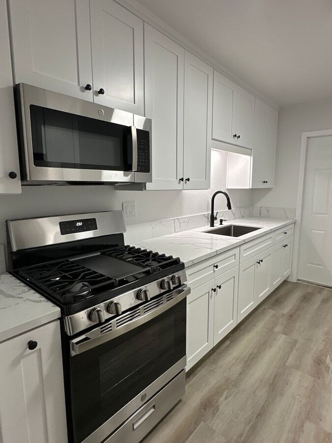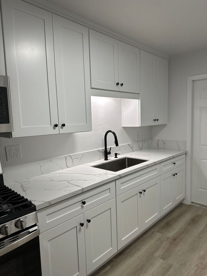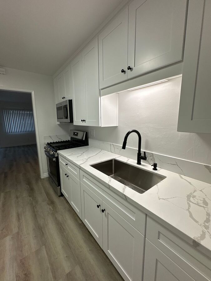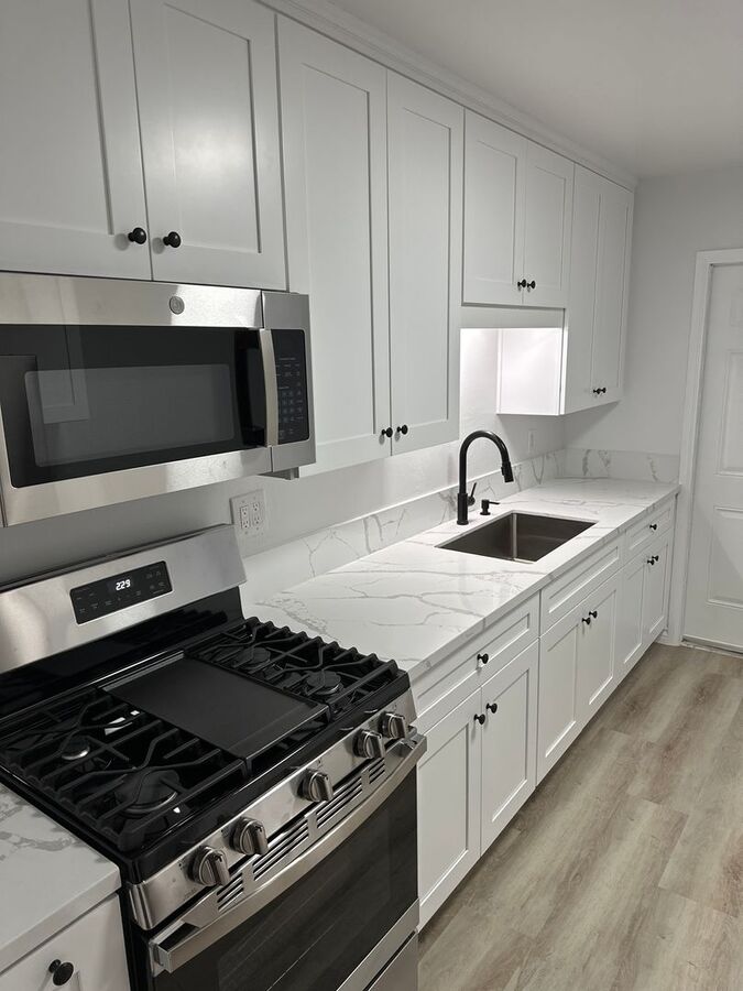 • Brand-new kitchen with quartz countertops & deep stainless sink