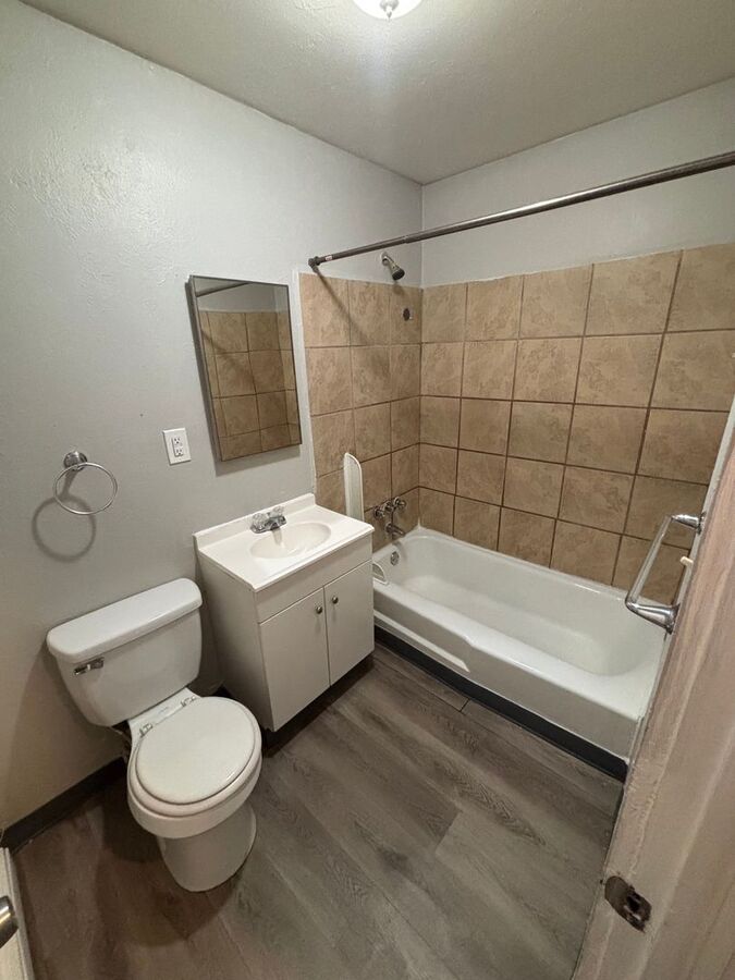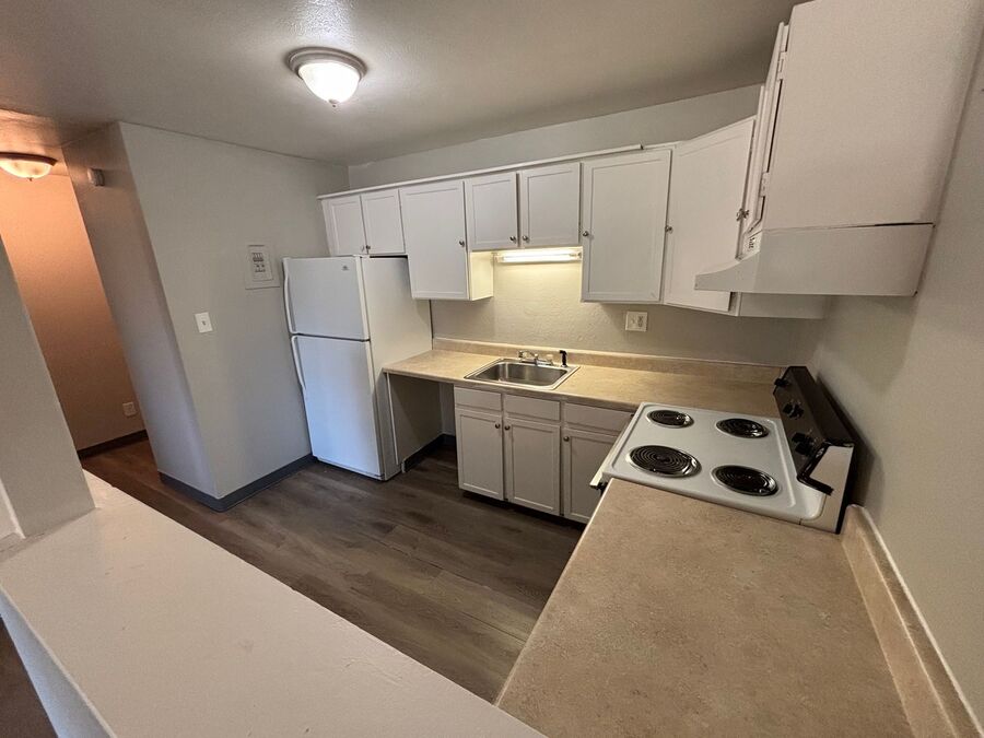 Welcome to 1726 Clemson Dr #101, a charming 1-bedroom, 1-bath apartment featuring dark wood-style flooring, a spacious open layout, and a kitchen with modern cabinetry and plenty of counter space. Large windows fill the home with natural light, creating a warm and inviting atmosphere. Conveniently located near shopping, dining, parks, and major roadways, this home offers both comfort and accessibility in the heart of Colorado Springs.