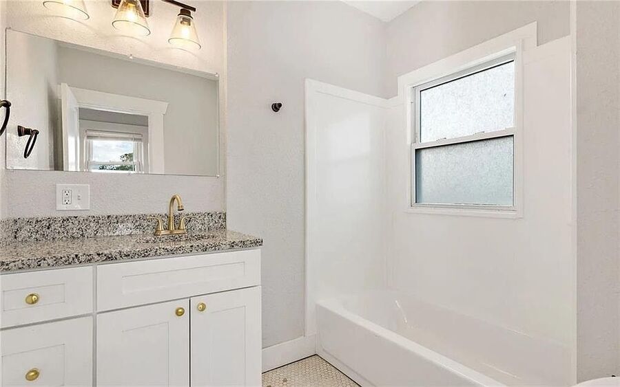 Both bedrooms are generously sized and continue the appeal with hardwood floors, ample natural light, and ceiling fans for year round comfort. The spacious bathroom is well appointed with tile flooring, updated cabinetry, granite countertops, a washer and dryer combo unit, and a large walk in shower, offering a clean and contemporary feel.