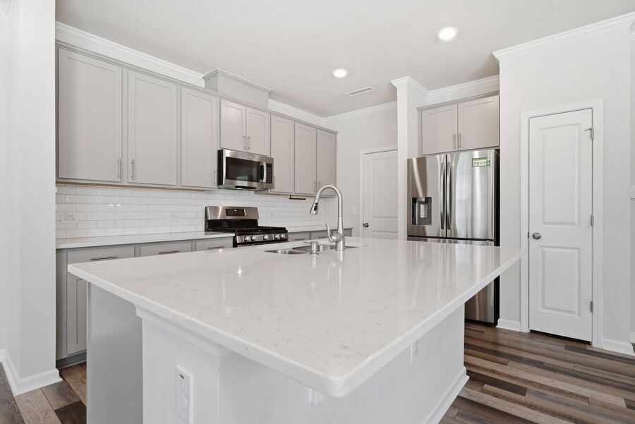 Stylish kitchen with stainless steel appliances, ample cabinet space & large island
