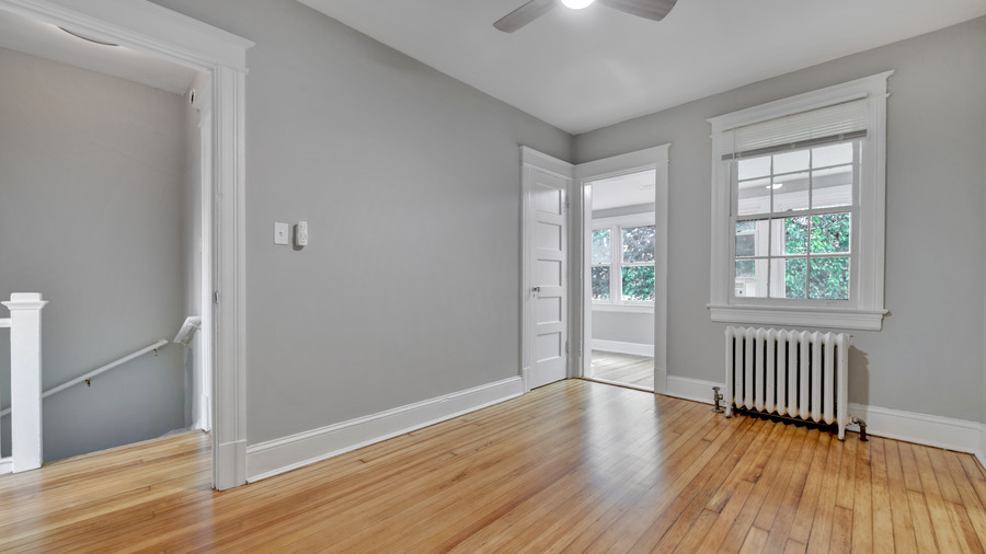 Walk through the front door to a spectacular living room with original hardwood floors that will impress your guests. Continuing through the ground level, you are met by a private dining area that has a luxurious chandelier, followed by a custom kitchen and a rare sunroom that will warm up the home. Each bedroom comes equipped with radiators and ceiling fans built to enhance the charm and comfort of your sleeping space. One bedroom offers a den that can be used as an office or a large closet!
