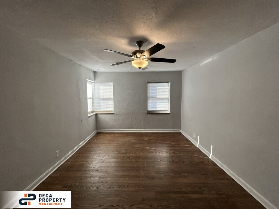 Cozy and spacious 2-bedroom, 1-bathroom apartment for rent! This charming property features a wide-open lot and unique cylindrical architecture that adds character and curb appeal. Step inside to a bright living room showcasing beautiful hardwood floors, high ceilings, and abundant natural light.