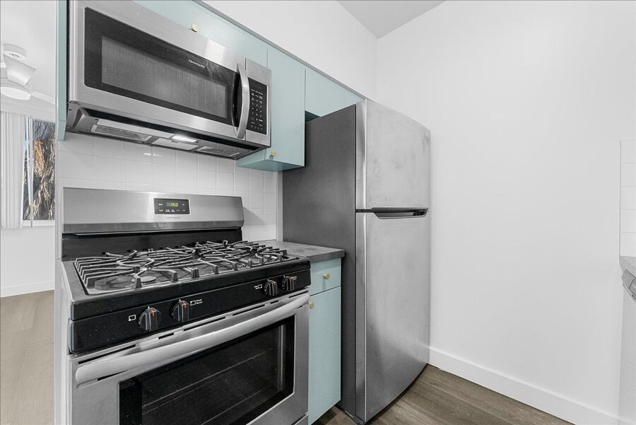 Welcome to 2736 Pomeroy Ave, Unit 303 — a bright and inviting one-bedroom retreat nestled in the heart of Boyle Heights. Perched on the third floor of a quiet, tree-lined street, this thoughtfully designed home offers the perfect blend of comfort, convenience, and contemporary style. Step inside to discover a spacious floor plan that feels open and airy from the moment you walk in. The alley-style kitchen features sleek stainless steel appliances—including a refrigerator, stove, microwave, and dishwasher—along with generous countertop space and plenty of cabinetry for all your cooking needs. Enjoy meals in the designated dining area under the gentle breeze of a ceiling fan, or unwind in the expansive living room, complete with a wall-mounted air conditioner and ceiling fan for year-round comfort.